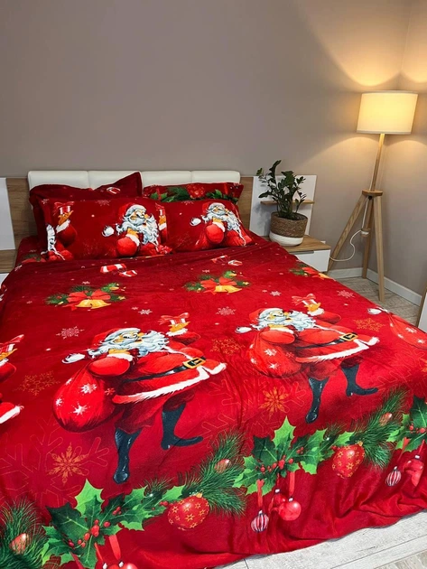 Комплект постільної білизни з новорічним принтом Євро 200х230 см наволочки 2х70х70 см Червоний (Д-al-ng-001)