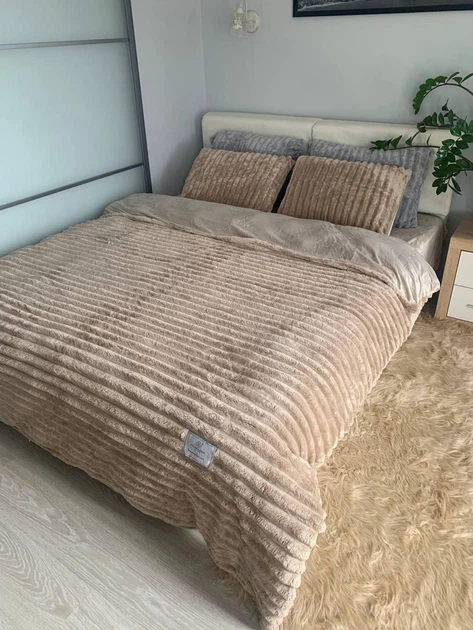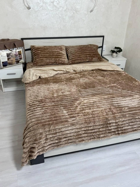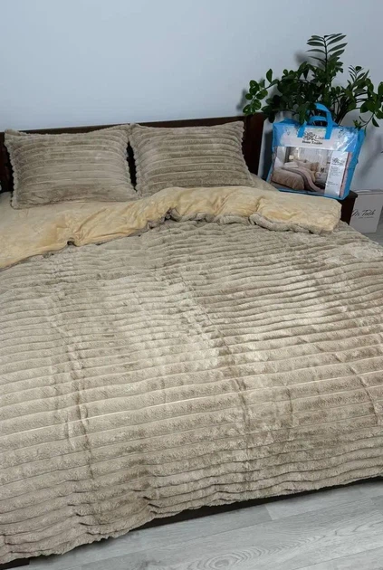 Плюшевий комплект білизни Євро 200х230 наволочка 2х50х70 Беж (Д-shar25-003)