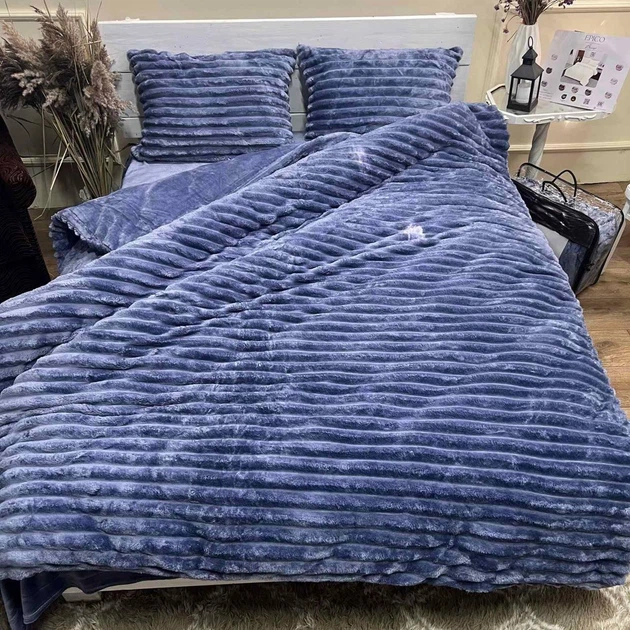 Плюшевий комплект білизни Євро 200х230 наволочка 2х50х70 Синій (Д-shar25-005)
