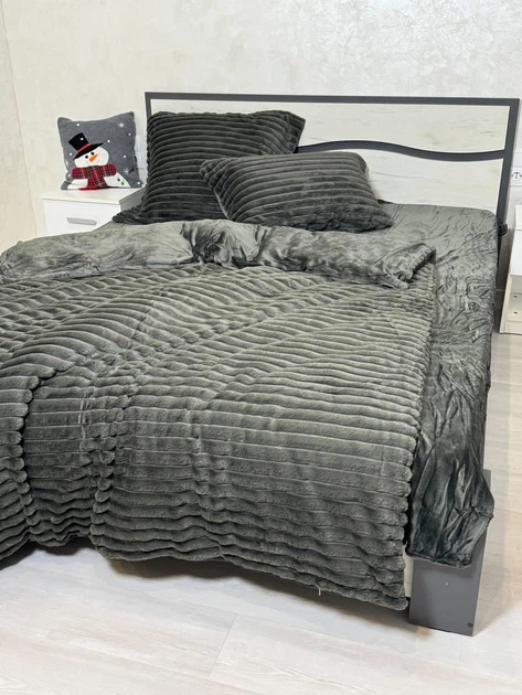 Плюшевий комплект білизни Євро 200х230 наволочка 2х50х70 Графіт (Д-shar25-002)