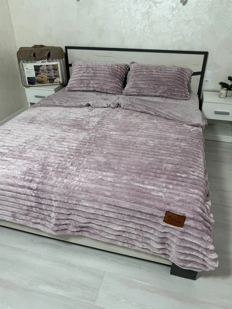 Плюшевий комплект білизни Євро 200х230 наволочка 2х50х70 Бузковий (Д-shar25-006)