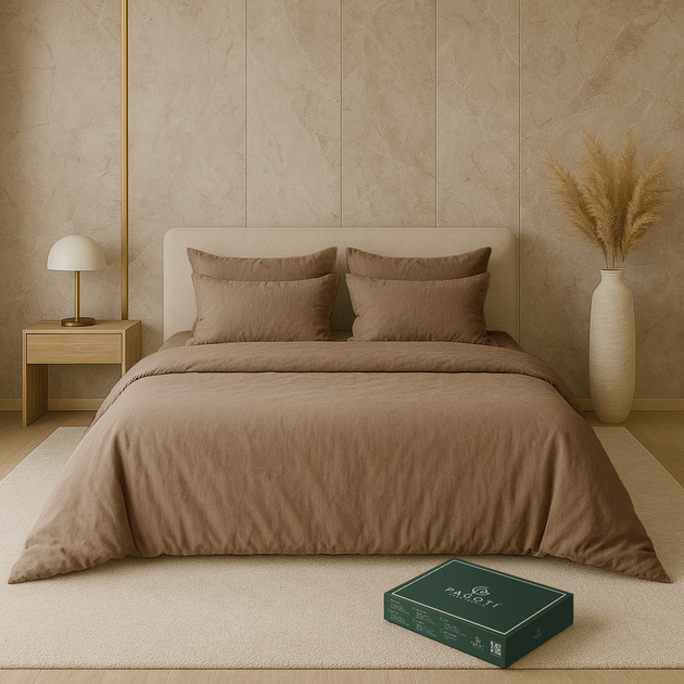 Комплект постільної білизни варена бавовна PAGOTI Natura матча (двоспальний/2*70х70 см)