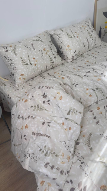 Постільна білизна з гумкою Листяний шепіт, сімейний розмір 145х215см х2шт, турецький ранфорс, наволочки 50х70, 100 бавовна