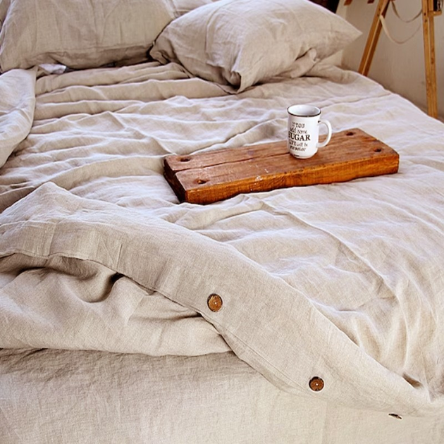Комплект постільної білизни з натурального льону беж Сімейний на гудзиках