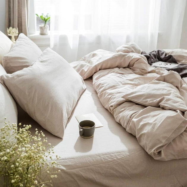 Комплект постільної білизни з натурального льону беж Сімейний на змійці