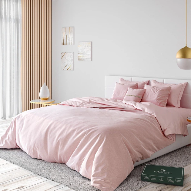 Комплект постільної білизни сатин-велюр PAGOTI Shine пудровий (сімейний/70х70)