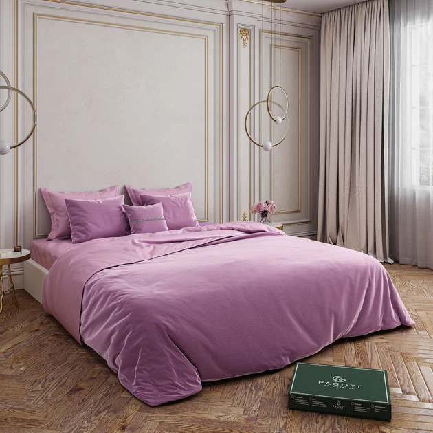 Комплект постільної білизни сатин-велюр PAGOTI Charm бузковий (сімейний/50х70)