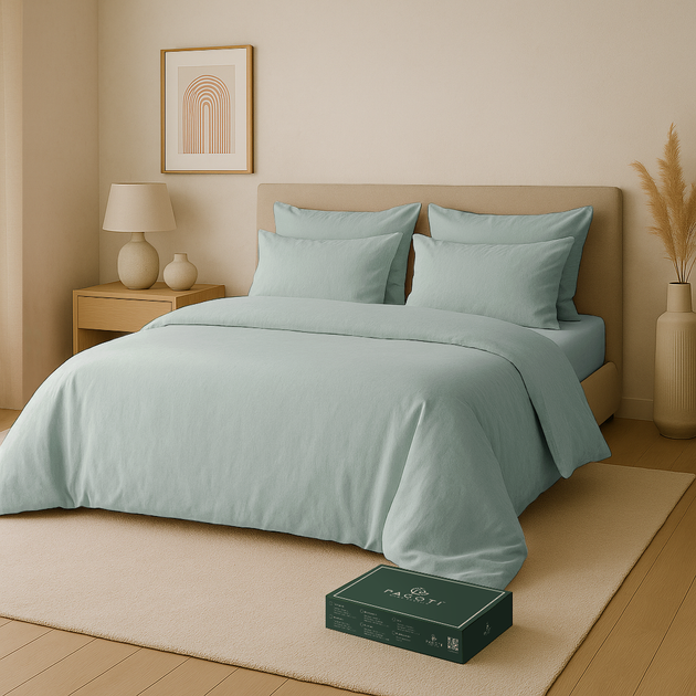 Комплект постільної білизни варена бавовна PAGOTI Natura евкаліпт (двоспальний/4*50х70 см)