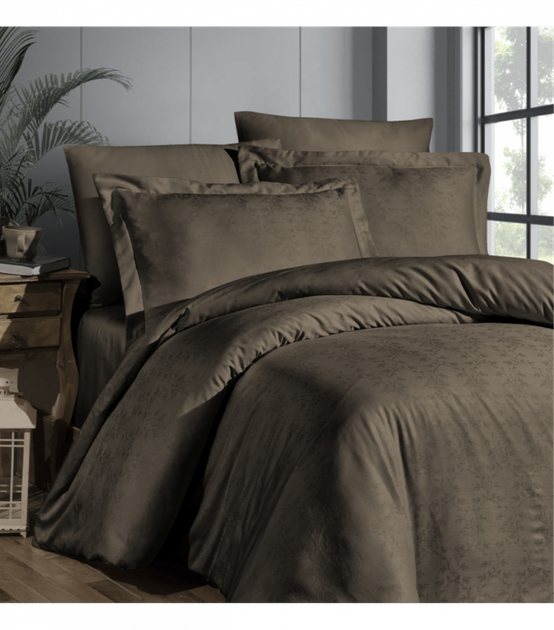 Комплект постільної білизни Jacquard Satin Dark Series First Choice - First Choice - JS-216 AMORE BROWN - Євро - Коричневий