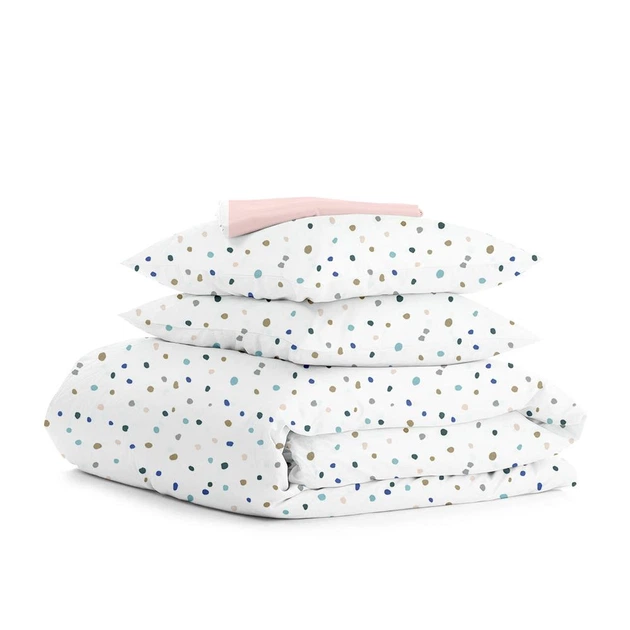 Сімейний комплект на гумці COSAS COLOR BLOTS CS4 Ранфорс 2х160х220 см Білий / Рожевий