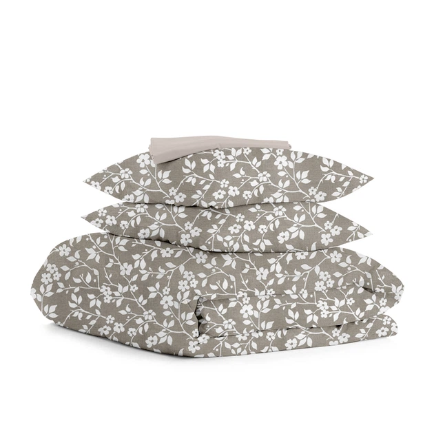 Сімейний комплект на гумці COSAS BEIGE FLOWERS Ранфорс 2х160х220 см Бежевий/Сірий