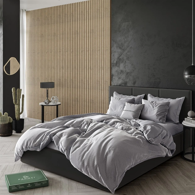 Комплект постільної білизни варена бавовна PAGOTI Natura темно-сірий (king size/4*50х70 см)