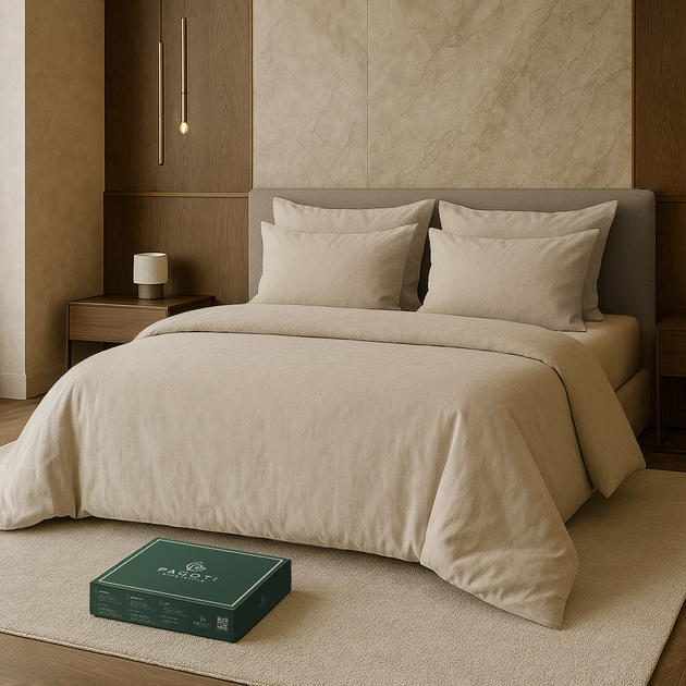 Комплект постільної білизни варена бавовна PAGOTI Natura бежевий (євро/4*70х70 см)
