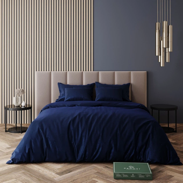 Комплект постільної білизни сатин-люкс PAGOTI Minimal темно-синій (сімейний/70х70)