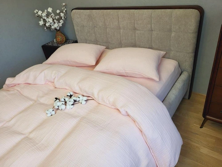 Постільна білизна з резинкою Пудровий, муслін Полуторний розмір, наволочки 50/70