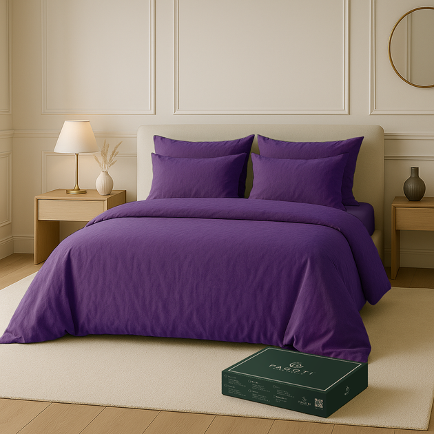 Комплект постільної білизни варена бавовна PAGOTI Natura фіолетовий (сімейний/4*50х70 см)