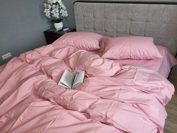 Постільна білизна з резинкою Рожевий, ранфорс Сімейний розмір, наволочки 50/70