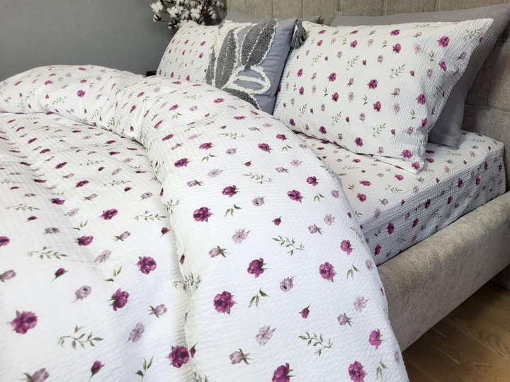 Постільна білизна з резинкою Німфа, ранфорс гофра (жатка) Сімейний розмір, наволочки 50/70