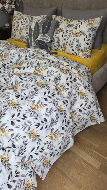 Постільна білизна з гумкою Вербена сірий Duo сімейний розмір 145х215см х2шт, жатка, турецький ранфорс гофре , наволочки 50х7