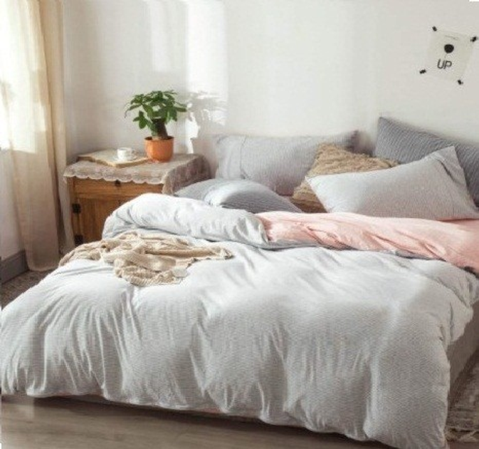 Комплект постільної білизни Almira Mix Фланель Супер Люкс Сірий + Персик Євро максі