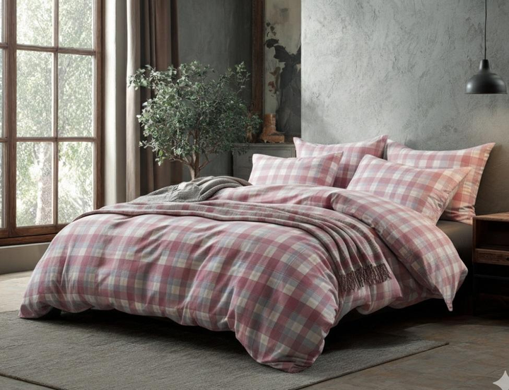 Комплект постільної білизни Almira Mix Фланель Супер Люкс Акварель Рожева клітина Євро максі