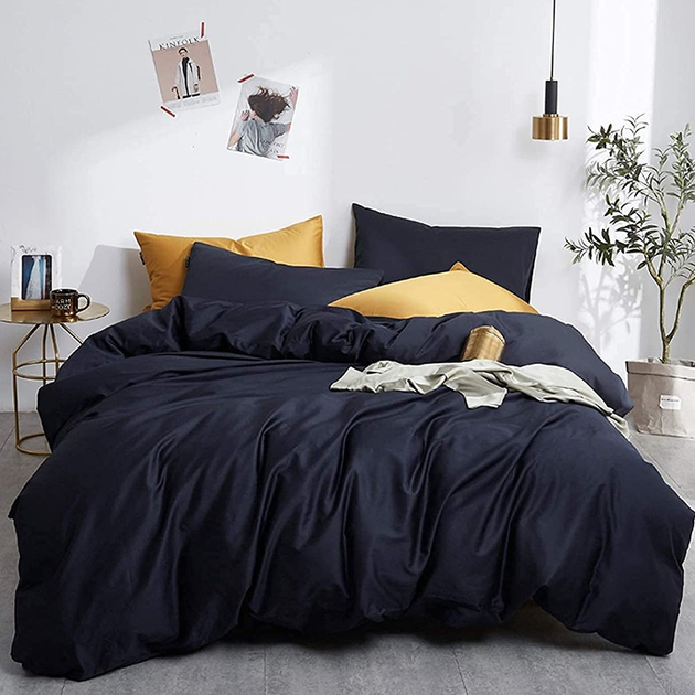 Чорна Постільна Білизна Royal Navy Premium Сатин Однотон Євро на резинці (226788)