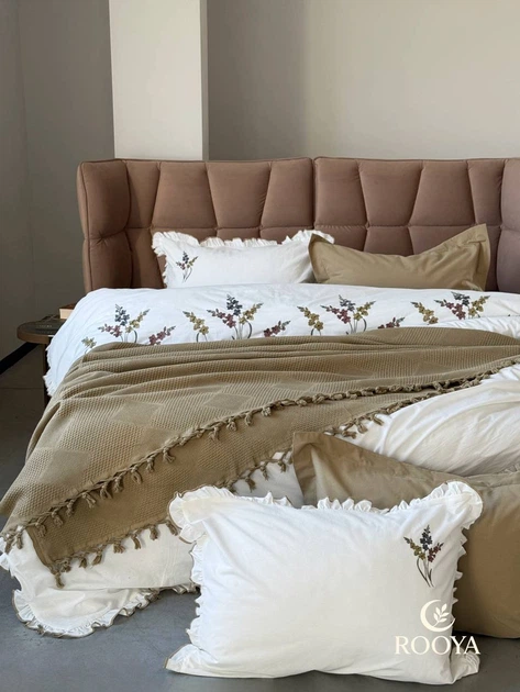 Постільна білизна з вишивкою і піке Saheser Eveline Beige євро 200220