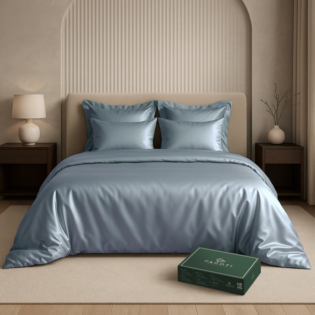 Комплект постільної білизни ліоцелл PAGOTI Aura сіро-блакитний (сімейний/4*70х70 см)