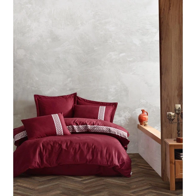 Постільна білизна євро Arya Saheser Сатин жаккард Brillant AR-A107302-burgundy 200х220 см