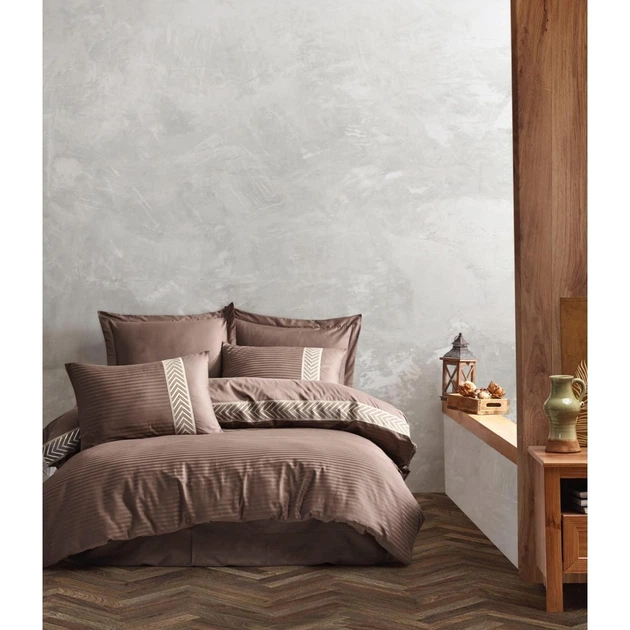 Постільна білизна євро Arya Saheser Сатин жаккард Brillant AR-A107302-brown 200х220 см коричнева