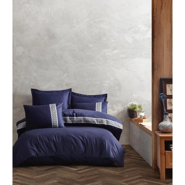 Постільна білизна Tivolyo Home Azelya 200х220 6 предметів двоспальне бежево/синє