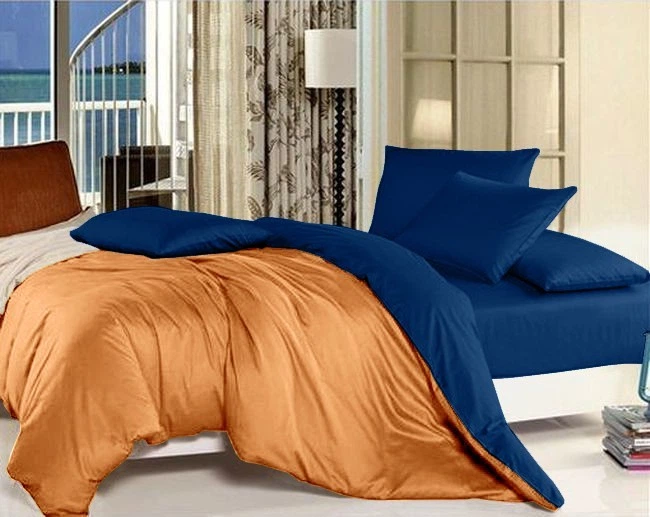 Двосторонній комплект постільної білизни Almira Mix Преміум Сатин Помаранчевий + Синій Сімейний