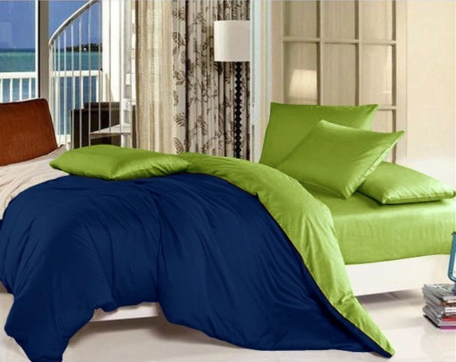 Двосторонній комплект постільної білизни Almira Mix Преміум Сатин Синій + Салатовий Сімейний