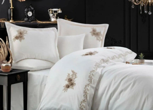 Постільна білизна Dantela Vita сатин з вишивкою Iz beyaz білий євро (svt-2000022294775)