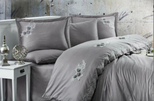 Постільна білизна Dantela Vita сатин з мереживом - Safir антрацит