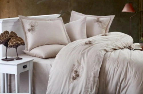 Постільна білизна Dantela Vita сатин з мереживом - Safir bej бежевий євро