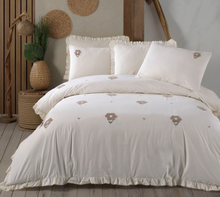 Постільна білизна Saheser. Florita bej бавовна з вишивкою-Євро