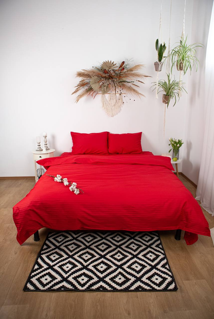 Комплект постільної білизни Страйп Сатин Premium червоний Сімейний 150х210 см (2шт)