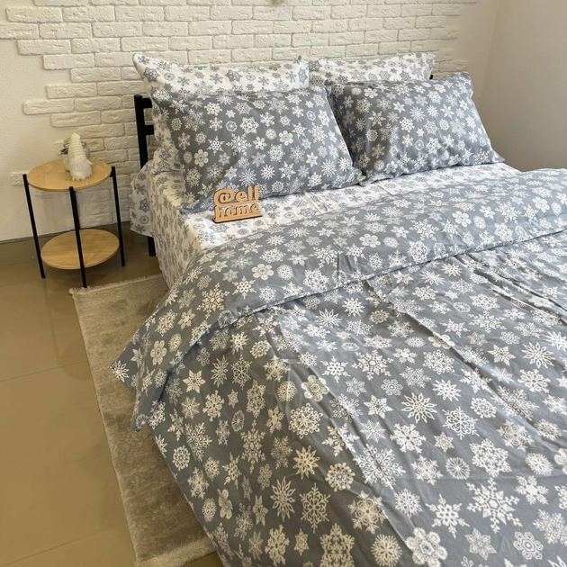 Комплект постільної білизни Ell Home фланель євро з 4 наволочками 70/70, простирадло на резинці Сніжинки MIX