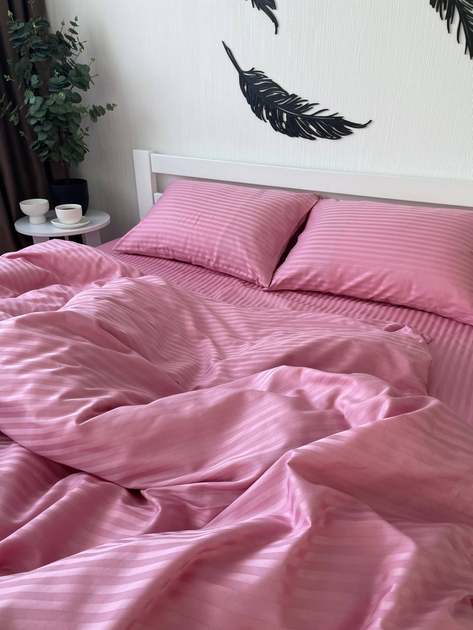 Комплект постільної білизни Страйп Сатин Premium рожевий Сімейний 150х210 см (2шт)
