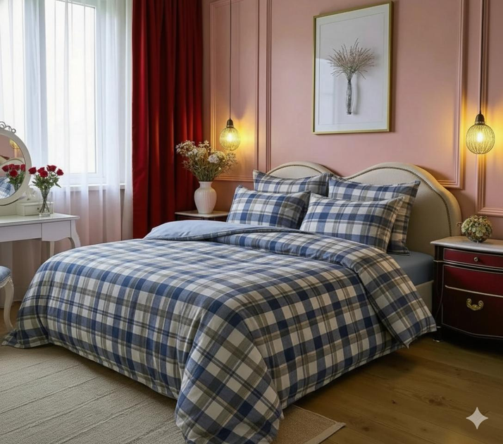 Комплект постільної білизни Almira Mix Фланель Супер Люкс Акварель Синя клітина Сімейний