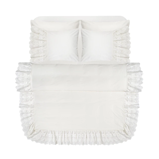 Постільна білизна Dantela Vita сатин з вишивкою - Hazan beyaz білий сімейний (svt-2000022323574)
