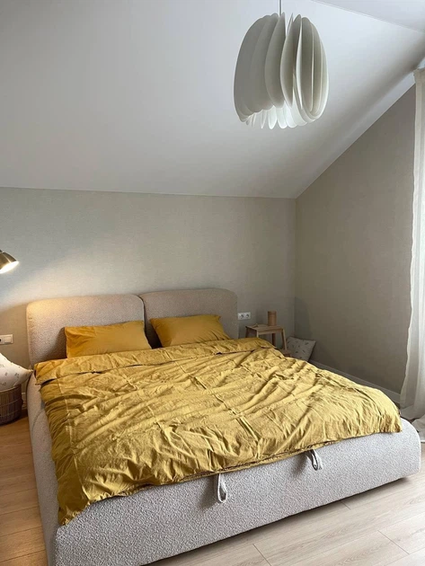 Комплект постільної білизни з натурального льону беж Полуторний на гудзиках