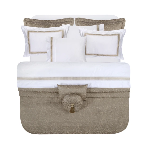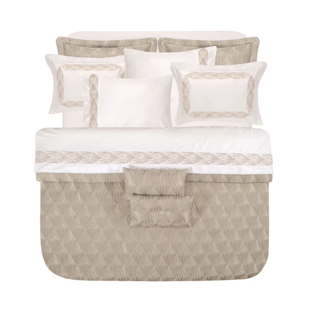 Набір постільної білизни з вишивкою та жакардовим покривалом Dantela Vita - Alina bej-gold євро