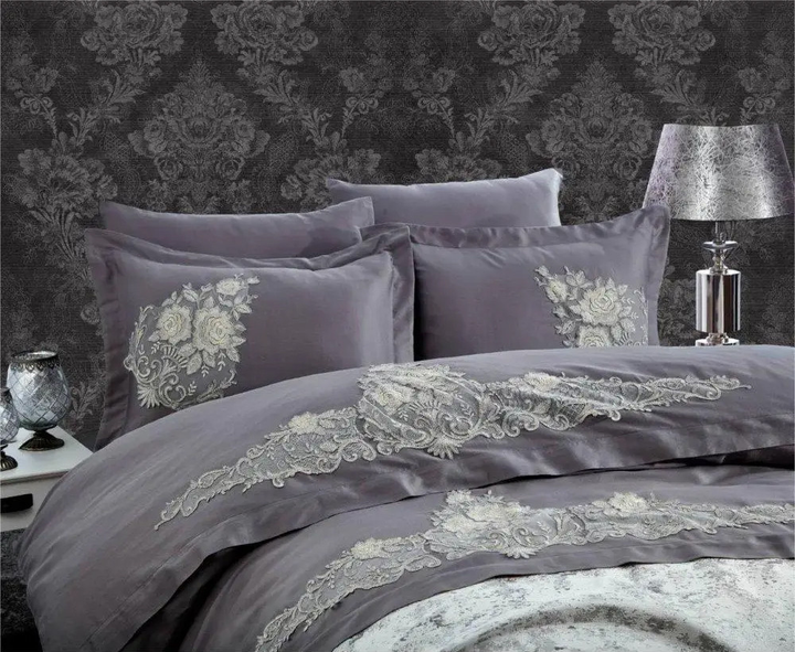 Постільна білизна Dantela Vita сатин з мереживом - Jenna antrasit антрацит євро