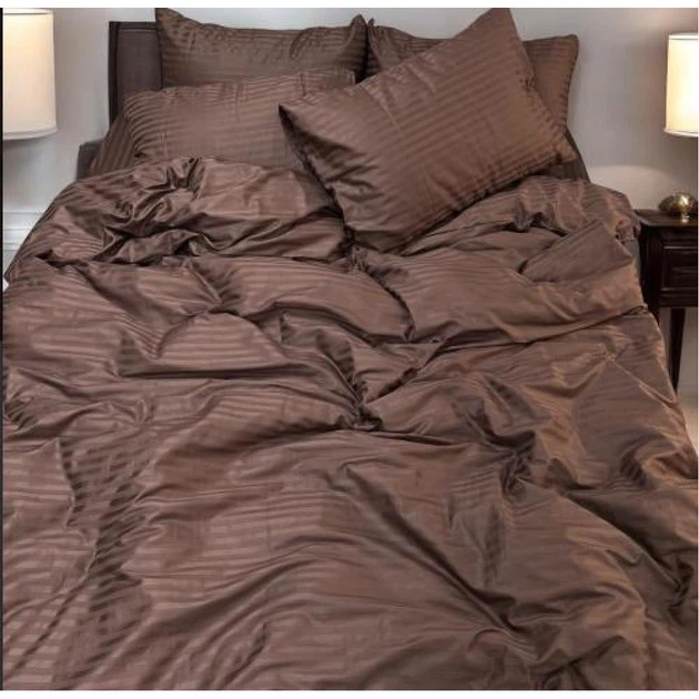 Постільна білизна бавовняна Візерунки Півтораспальна 150 х 215 Страйп сатин мікрофібра 50 x 70 Коричневий