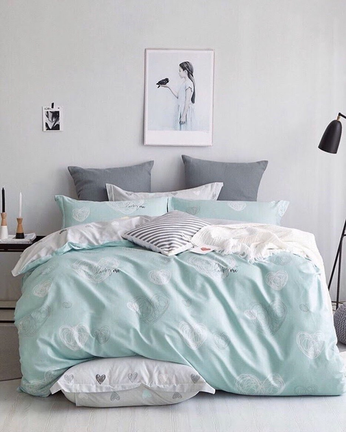 Комплект постільної білизни Sweet-Dream Мятне серце 200 х 215 см євро бірюзовий