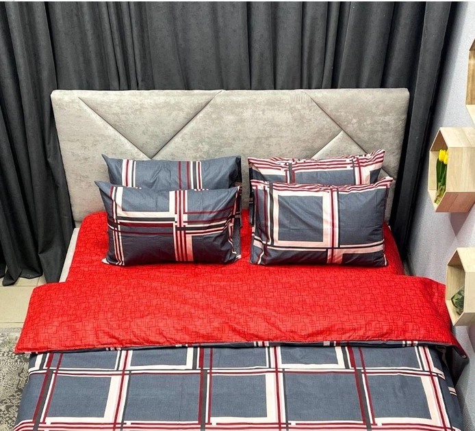 Постільна білизна бязь полуторний Підковдра 150*220 см червоно-сірий геометрія
