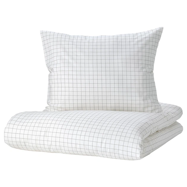 Підковдра і наволочка ІКЕА VNKRETS картатий білий, 150x200.50x60 см 105.079.37