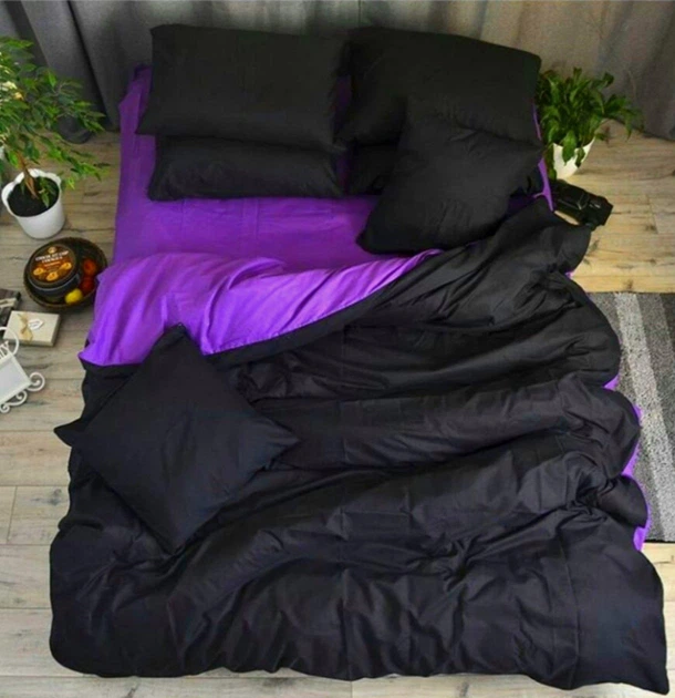 Комплект постільної білизни Полуторний однотонний бязь голд люкс 150х220 см Чорний фіолетовий